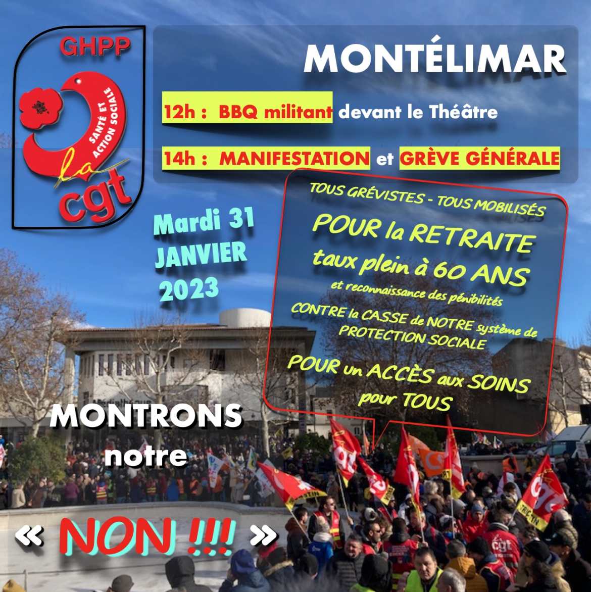 manifestation, Retraite, Grève générale, Montélimar, BBQ militant, 31 janv. 2023 -